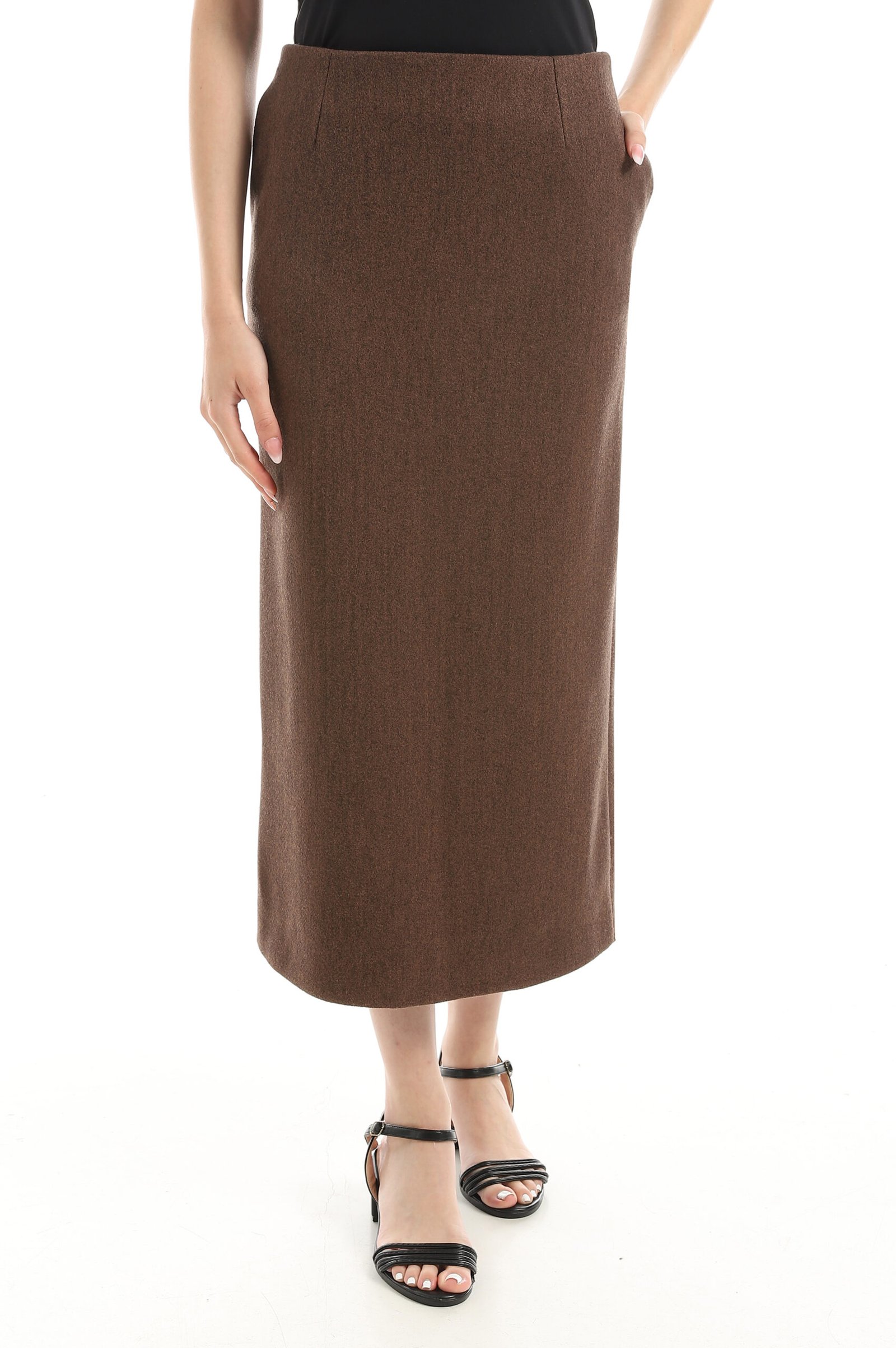 - Straight midi skirt with back slit