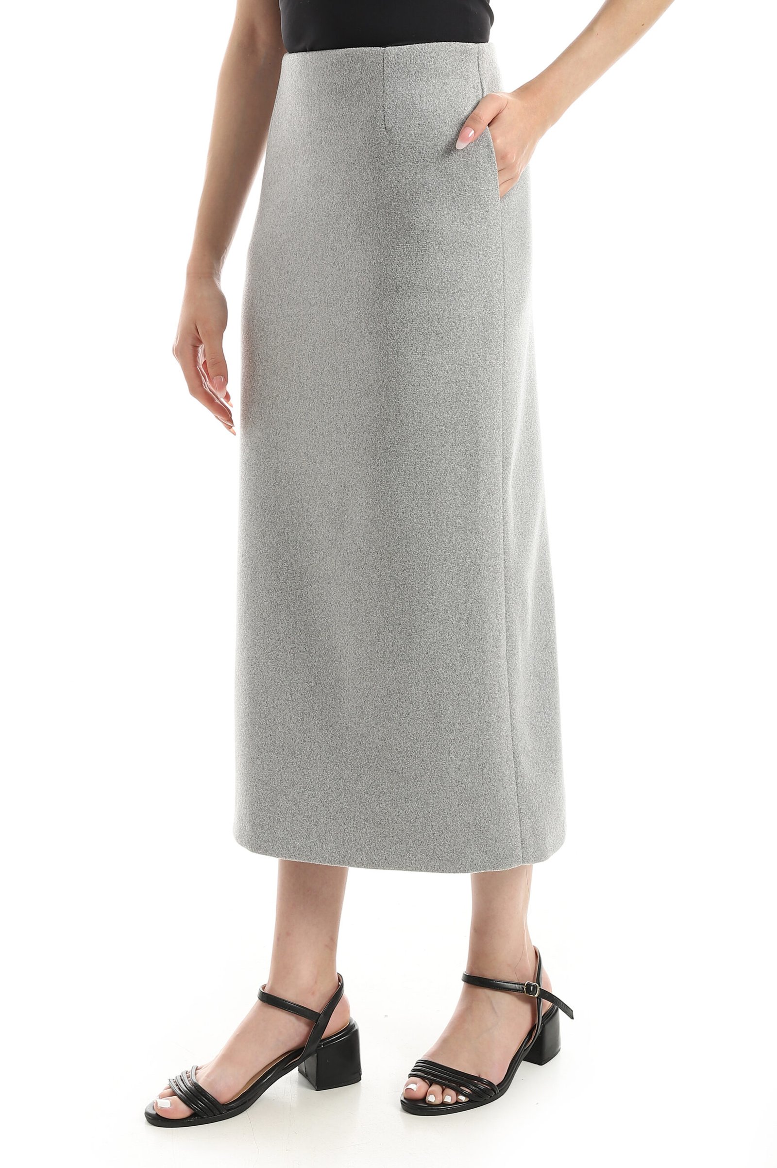• Straight midi skirt with back slit